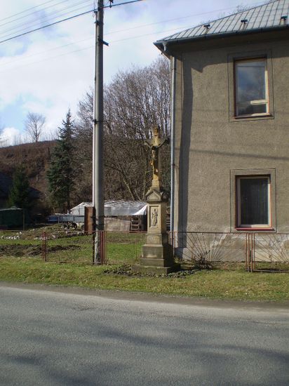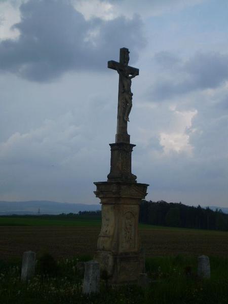 Kříž z roku 1822 u bývalé školy stojí těsně u státní cesty
