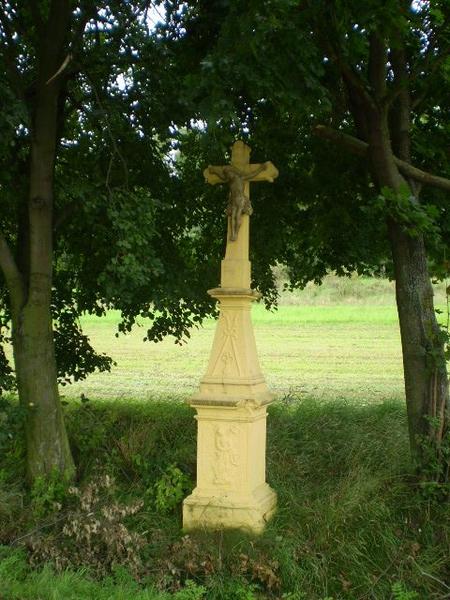 Kříž na návsi v Pavlově byl postaven v roce 1864, jak je uvedeno na vytesaném nápise "Pod praporcem Pane Kříže tvého jista obec štěstí svého.Postaven L.P.1864 S přispěním dobrodinců Florian Lavička, Jozef Wyjidáček, Jozef Bílek a manželka Kateřina a s obecní kasy pod představem obce. Jozef Wykydal, Jozef Kuba a Jozef Honig". Kříž je zhotoven z maletínského pískovce.