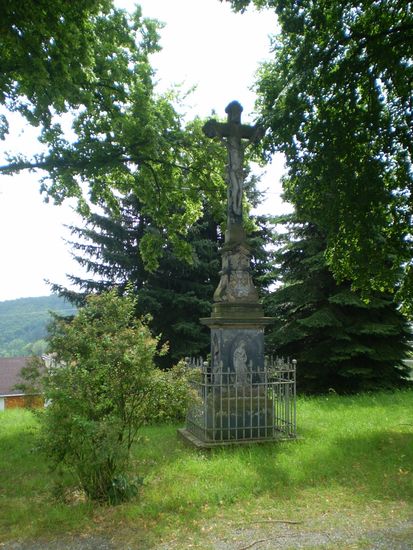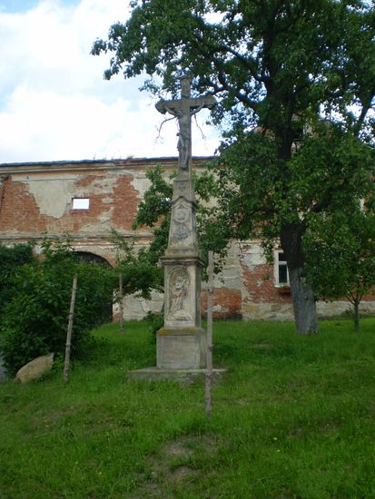 Pískovcový kříž z roku 1816 v Pavlově nese na zadní straně nápis " Georg Weigiaczek funidator 1816".