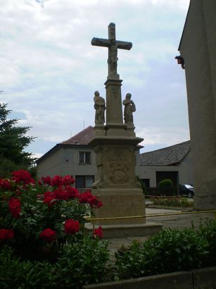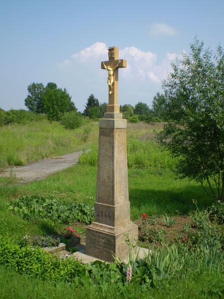 Kříž k Moravičanům - pískovcový kříž u cesty k Doubravicím je z roku 1766