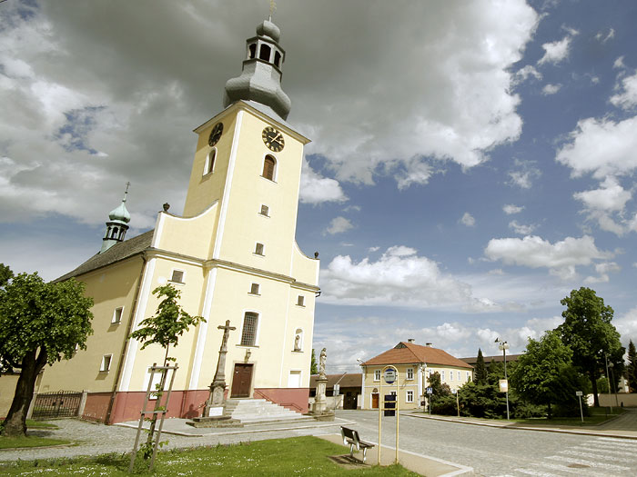 Jednolodní kostel s románským jádrem, goticky a renesančně přestavěný a upravený v klasicistně-barokním stylu do dnešní podoby v 18. století. Postavení kostela bylo datováno do roku 1208.