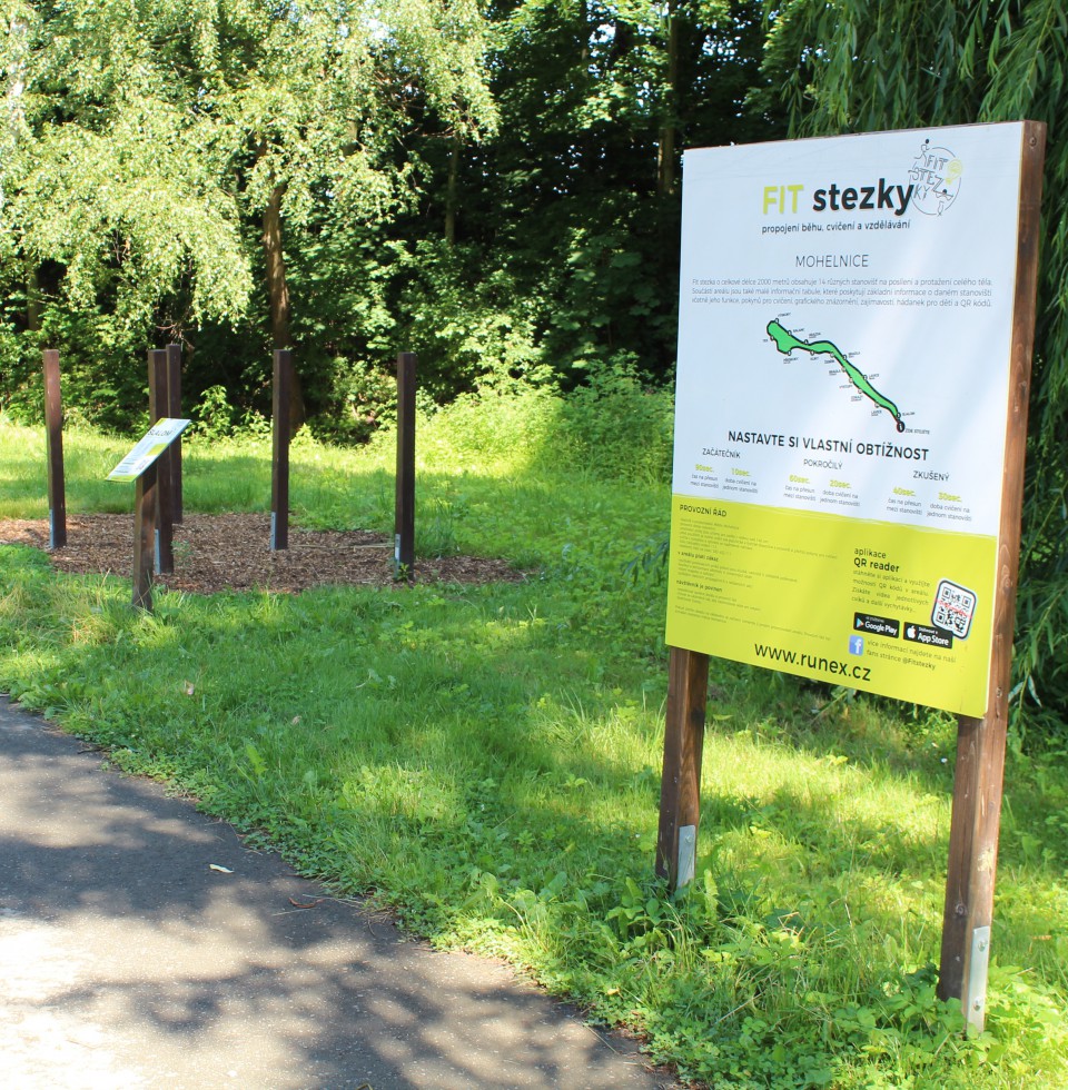 Mohelnickou FIT stezku najdete v městských sadech po obou březích potoka Mírovky. Jde o 2km okruh, který obsahuje 14 stanovišť na protažení a posílení těla.Stezka vede příjemným terénem ve stínu vzrostlých stromů.