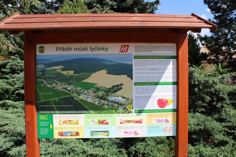 3. V Klopině sídlí společnost ÚSOVSKO, a.s. známá výrobou FIT müsli tyčinek. Vůbec prvních müsli v České republice. Odkudkoliv bude do obce přijíždět, uvidíte táhnoucí se sady ovocných stromů, převážně jabloní. Krásné jsou zejména na jaře v době svého květu. V centru obce najdete jablíčkovou cykloodpočívku, kde je také informační panel s povídáním o historii výroby müsli tyčinek. Stojí přímo před obchodem COOP, v němž si můžete tyčinky na ochutnání zakoupit.
