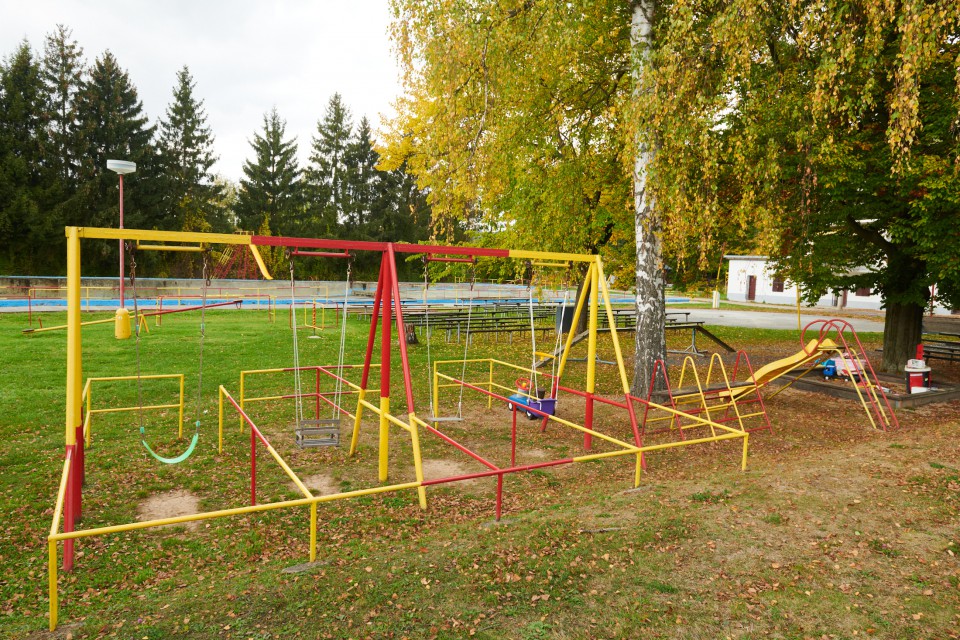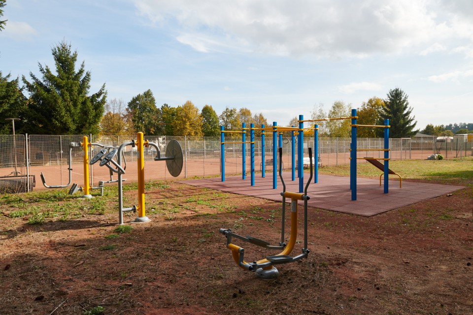 4. Venkovní posilovna je ve společném areálu s tenisovými kurty v centru obce. Dětské hřiště s klasickými dřevěnými průlezkami najdete mezi domy za odbočkou na Pískov.