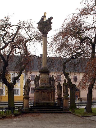Jedná se o čtyřbokou kamennou kašnu se sochou Svatopluka z roku 1859 a neogotický sloup Nejsvětější Trojice vybudovaný v letech 1853–1860 uprostřed náměstí. Pro sloup byla využita starší barokní skulptura Nejsvětější Trojice a čtyři menší sochy morových patronů, kterou umělci doplnili o sochy sv. Cyrila, Metoděje, Petra a Prokopa.