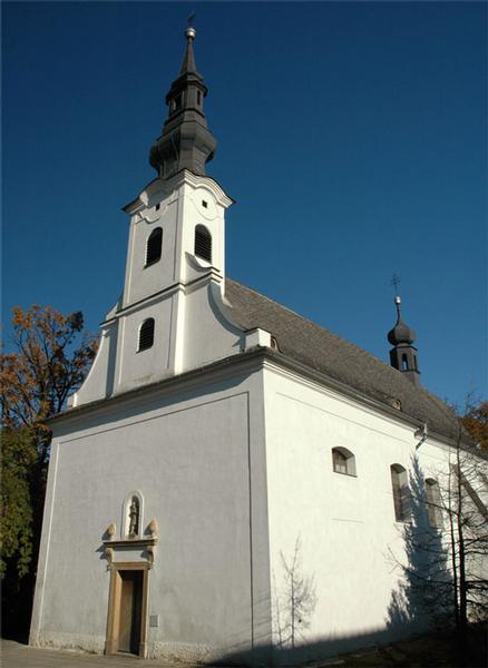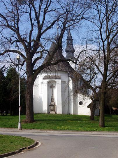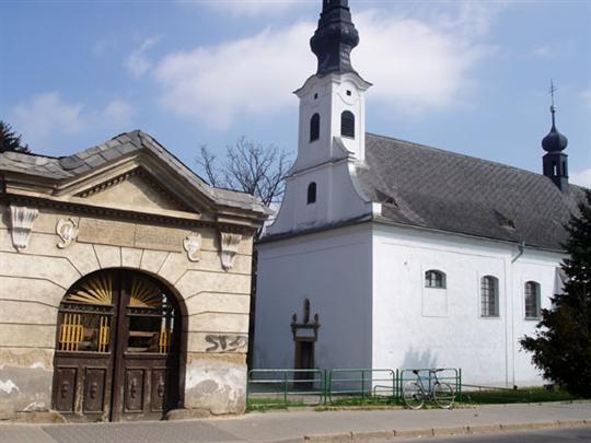 Původně hřbitovní kostel stojí na Nádražní ulici, kněžiště a východní část zde stojí od r. 1584, v dalších stoletích byl kostel barokně upraven.