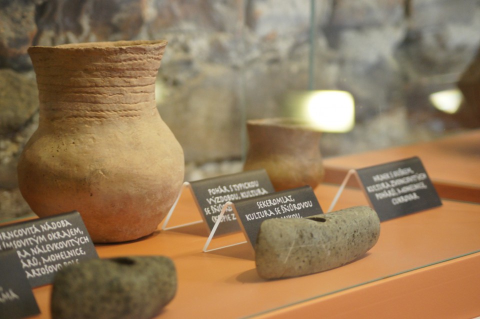 Ve sklepních prostorách lze navštívit moderní expozici „Pravěk Mohelnicka“ s řadou unikátních artefaktů, uvidíte zde například torza neolitických venuší nebo náhrdelník z měděných drátků a provrtaných perel z pozdní doby kamenné. Expozice je doplněna o interaktivní pravěkou hernu, ve které si děti i dospělí mohou vyzkoušet pravěké techniky drcení obilí nebo si mohou zahrát na archeologa a seskládat si ze střepů pravěké nádoby.