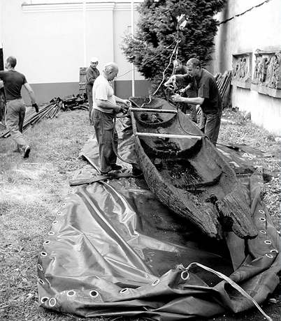 Pravěká loď, vydlabaná z jednoho kusu dubového kmene a vyztužená čtyřmi žebry, byla nalezena v areálu štěrkopískoven na původním místě úvaziště či malého přístavu.