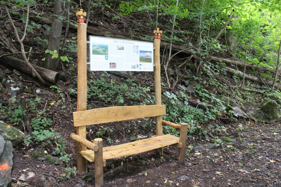 1. Přesně jak říká název, stezka vede lesní pěšinou a obchází kolem dokola celý hradní komplex. Vyjděte z návsi silnicí směrem k hradu a až uvidíte směrovku, tak odbočte doprava nenápadnou cestou mezi domy. Tady začíná stezka, která je vhodná k procházce pro všechny věkové kategorie. Najdete na ní panely s informacemi o obci, hradu, zdejších pověstech a o místní flóře. Na stromech jsou umístěné cedulky a vy můžete hádat, o jaký strom jde. Děti se vyřádí na průlezkách a čekají tu na ně dva naprosto originální fotopointy. Cestou můžete třeba spočítat, kolik malých hradních věžiček zdobí jednotlivé prvky na trase. Na konci stezky stojí altán, kde si můžete dát svačinu.