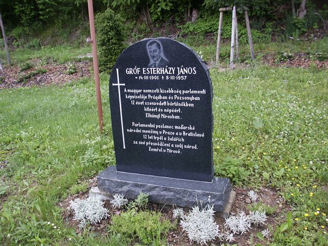 Památník vznikl v roce 1967, skulpturu mužského torza vytvořil Jiří Jílek. V roce 1998 byla vedle tohoto památníku odhalena pamětní deska hraběte Jánose Esterházyho, který byl vězněn v mírovské věznici a v roce 1957 zde také zemřel.