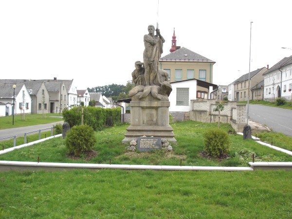 Památník od známého pražského sochaře a řezbáře Vojty Suchardy známého obnovou staroměstského orloje. Alegorické sousoší poutá pozornost mnoha návštěvníků.