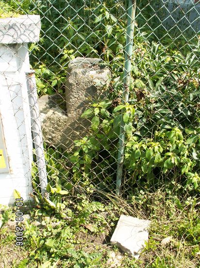 Pískovcový smírčí kříž s krátkými tupými rameny stojí u