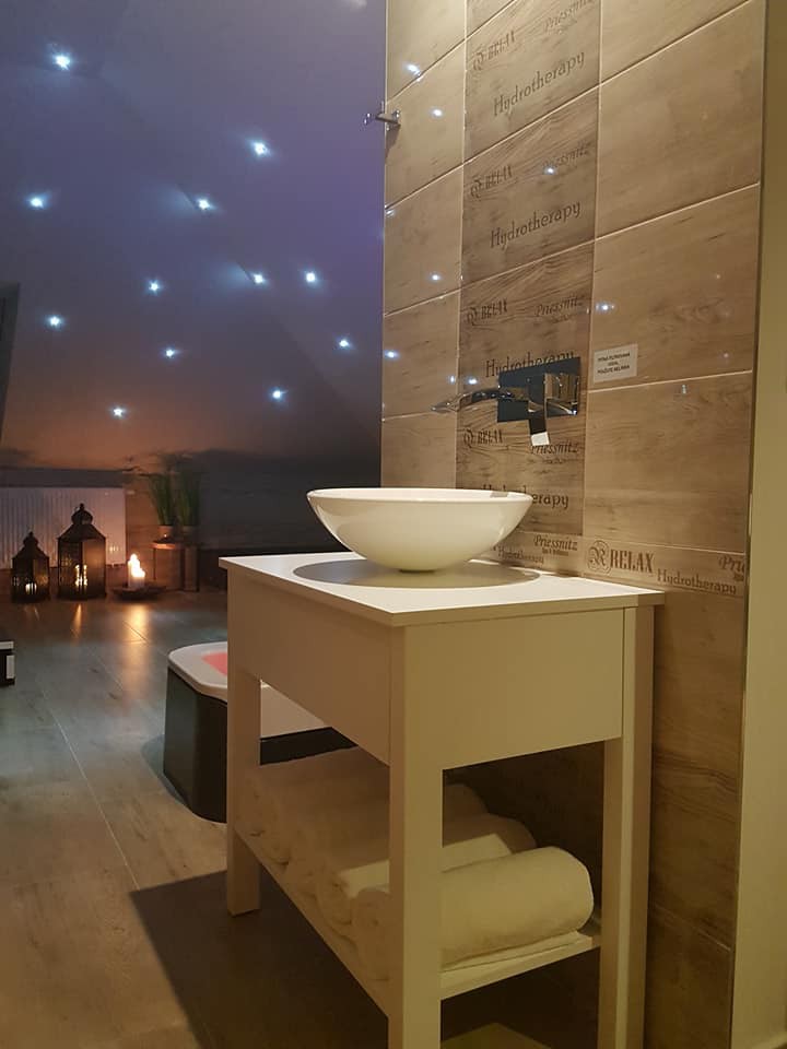 Vkusně zařízený interiér celého domu a dokonalé wellness ve Vás vzbudí pocit naprostého klidu, uvolněnosti a dodá pocit energie do dalších dnů. Pečlivě vybraná vířivka české výroby s teplotou vody do 37°C, pískovou filtrací a rotačními tryskami uvolní Vaše tělo, finská sauna s aromaterapií nabudí Vaši imunitu a Kneippovy bazénky s reflexologickou deskou zlepší krevní oběh a ozdraví unavené končetiny. O Vaše příjemné naladění se postará relaxační hudba a aromaterapie. Přijďte si odpočinout například v páru nebo ve skupince.