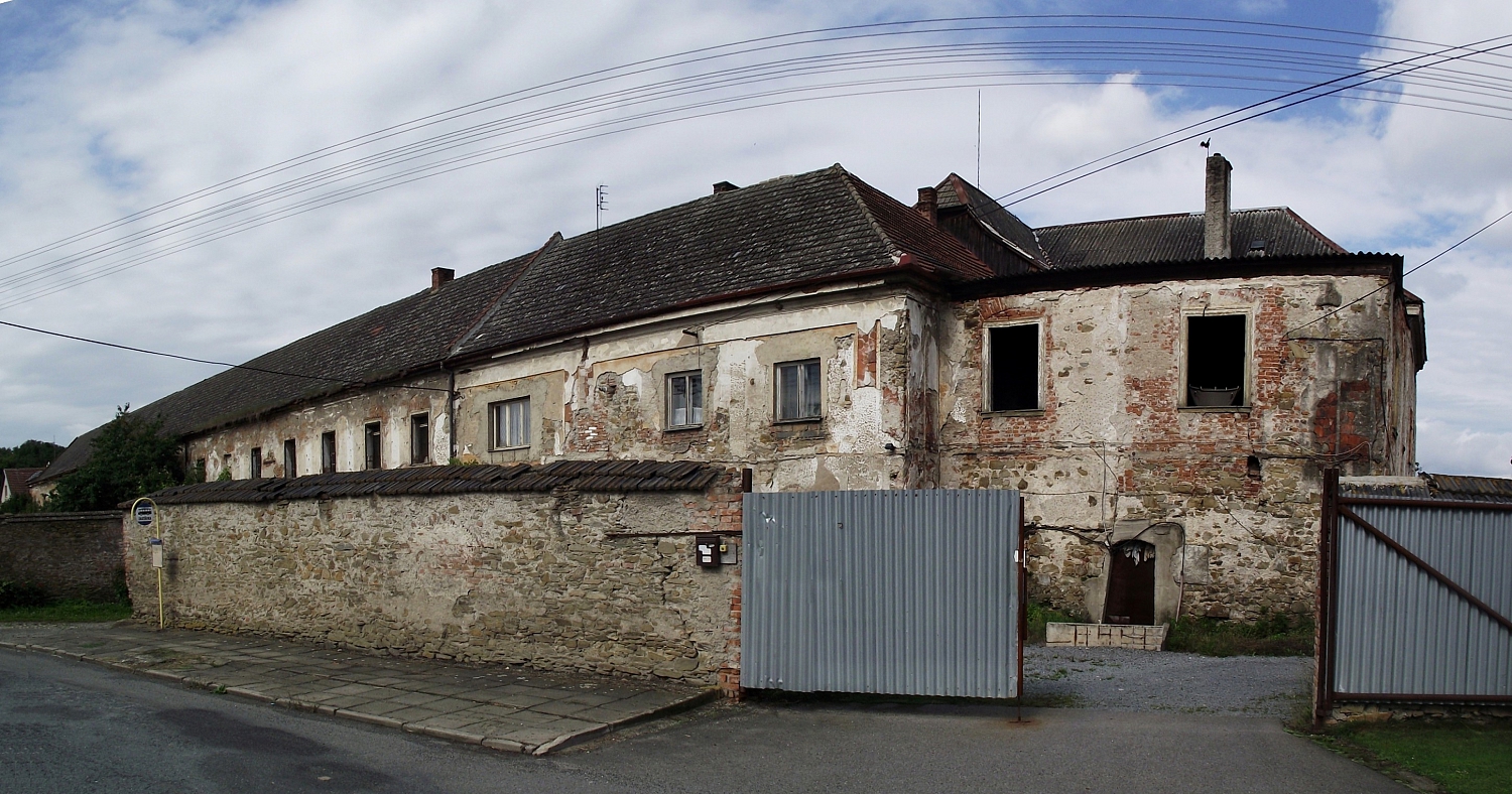Někdejší tvrz z pozdního středověku byla v 2. polovině 16. stol. přestavěna kartuziány na nepříliš vzhledný jednopatrový trojkřídlý zámek stojící u návsi (č.p. 37), který byl v 18. století rozšířen a přeměněn na hospodářský dvůr.