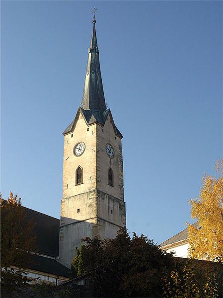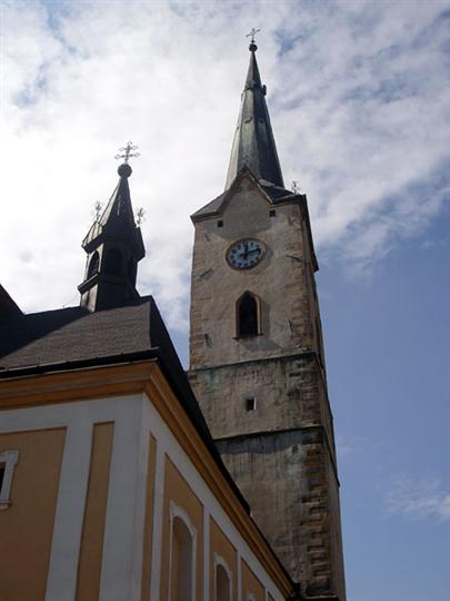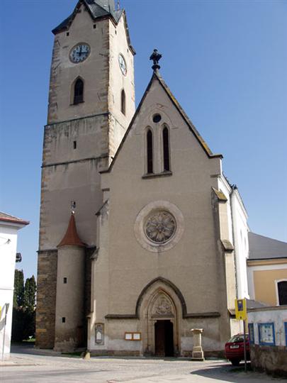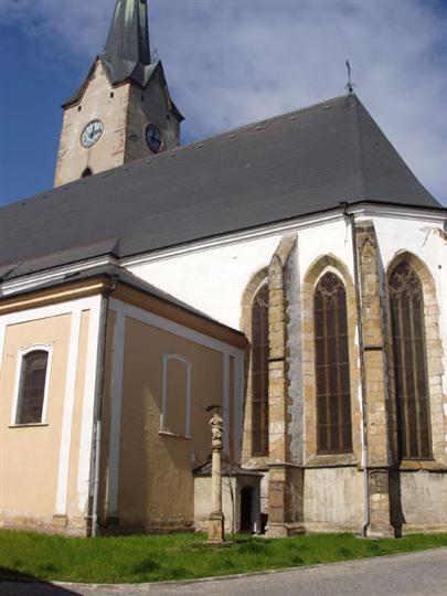 Farní kostel, v jehož stavbě se prolíná hned několik slohů - gotika, renesance, baroko a posledně novogotické úpravy.