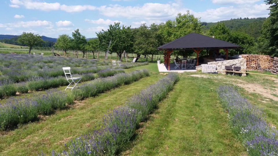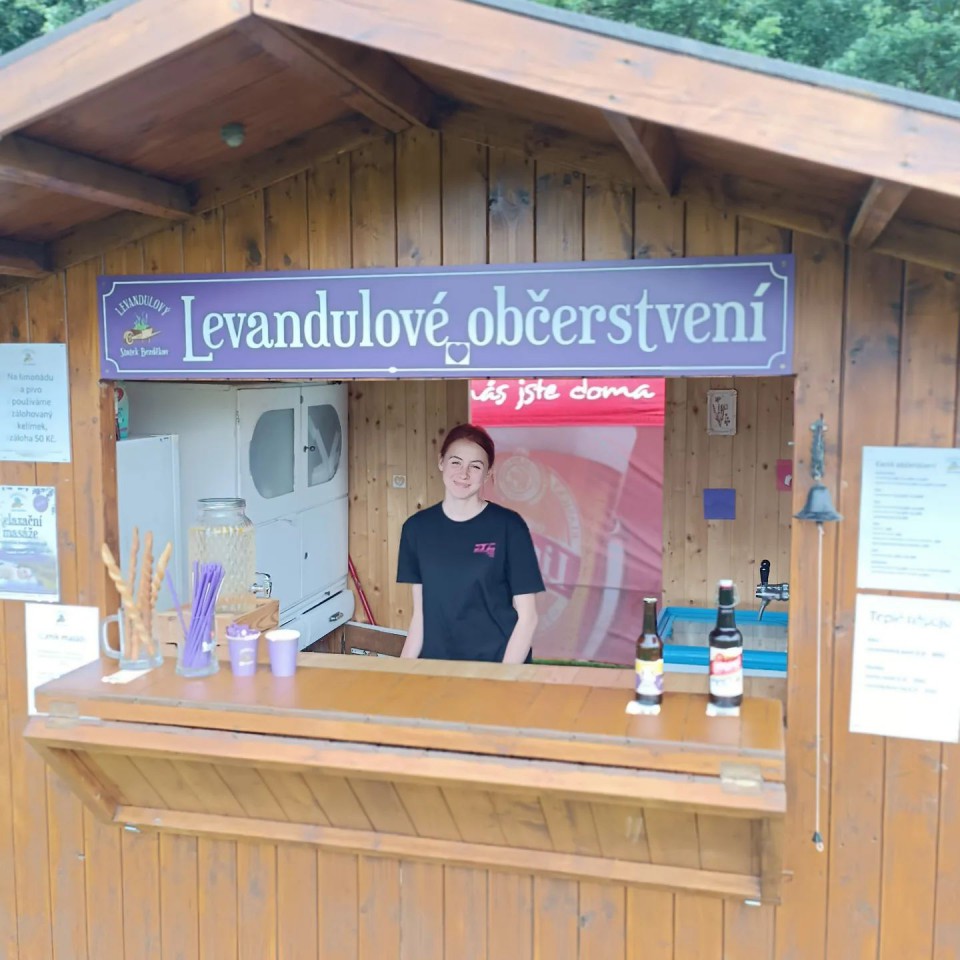 Osvěžující levandulové občerstvení ve venkovním altánu - domácí levandulová limonáda, zmrzlina, bábovka, klobása, káva, pivo, růžové víno a další. Občerstvení otevřeno vždy od května do konce letních prázdnin.