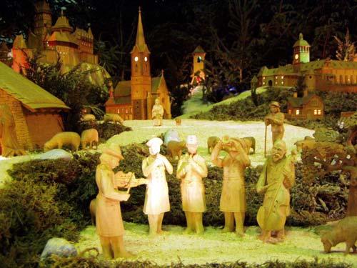 Unikátní dřevěný betlém se každoročně vystavuje v Mohelnici v kostele sv. Tomáše. Řada staveb má své skutečné předlohy.