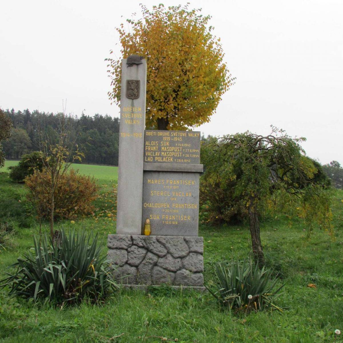 Památník obětem 1.a 2.světové války je opatřen státním nápisem „ K 20. výročí Československé republiky, bětem světové války věnují občané a pozůstalí“. Z obce padlo za 1. světové války 11 mužů, u jejich jmen jsou na památníku fotografie. V roce 1945 byl památník doplněn o padlého sovětského partyzána A. Nuďka.
