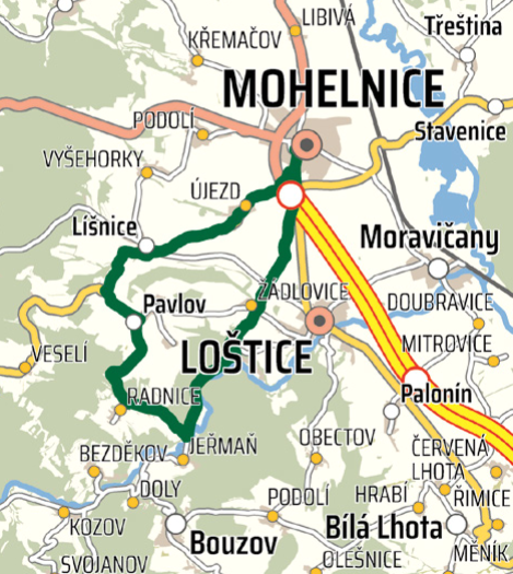 Mohelnice - Újezd - Líšnice - Svinov - Zavadilka - Pavlov - Radnice - Jeřmaň - Vlčice - Žádlovice - Mohelnice