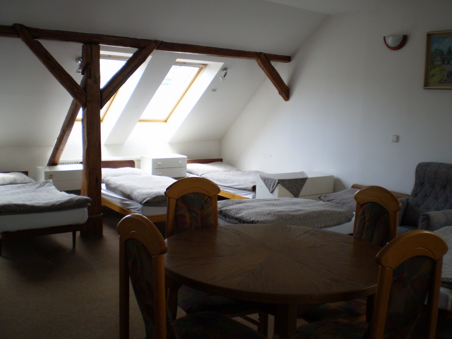 V 3-6ti lůžkových pokojích s TV, kuchyňkou a koupelnou. Součástí objektu je dvůr s 5-ti parkovacími místy pro os. automobily, pergola se zahradním nábytkem a grilem.